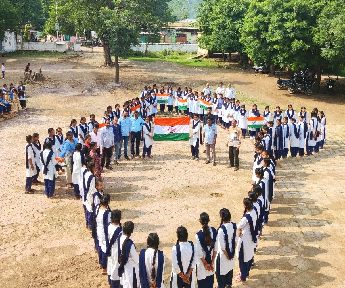 नीमच 12 अगस्त 2025, हर घर तिरंगा अभियान के अन्तर्गत शासकीय कन्या हायर सेकेंडरी स्कूल रतनगढ़ जिला नीमच में मंगलवार को स्कूली छात्राओं द्वारा राष्ट्रीय ध्वज तिरंगे के साथ भारत के नक्शे की प्रतिकृति बनाई गई। इस दौरान प्राचार्य रविंद्र सिंह राय सहित समस्त शिक्षकगण व निकाय कर्मचारी भी उपस्थित थे।