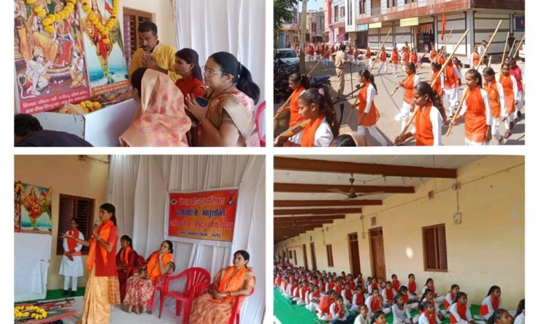 प्रखंड सुवासरा में शक्ति यात्रा व सिंदूर शोर्य यात्रा जैन दादावाड़ी में संपन्न हुई जिसमे मुख्य अतिथियों द्वारा राम दरबार व भारत माता के सामने दीप प्रज्वलित कर पुष्पहार पहनाया, सभी अतिथि जिसमें प्रियंका जैन सामाजिक कार्यकर्ता,दीदी टिना शर्मा विभाग संयोजिका, हेमलता पाटीदार जिला सह संयोजिका मातृशक्ति, अर्जुन सिंह रुपारेल प्रखंड अध्यक्ष,दीदी पूजा बैरागी नगर संयोजिका, अतिथि स्वागत कर कार्यक्रम मुख्य वक्ता टिना शर्मा ने सभी बहनो मार्गदर्शन में बहने को बताया महंदी, कपड़े, शादी मैं साडी पहने के लिए अब्दुल के वहां न जाते हुए किसी गरीब हिंदू को बुलाना चाहिए,बहनों आज की आदर्श करीना ,अयीषा ,न माने हमारी आदर्श जीजा बाई,रानी पद्मिनी,है आप हिन्दू शेरनी है सभी भगवान को साक्षी मानकर संकल्प करवाया है कि मैं जीते जी ने दुसरे धर्म को मानूंगी, ना मेरी सहेली मेरे परिवार को अपनाने दुगी , किसी बहन बेटी को लव जिहाद का शिकार नहीं होने दुगी नहीं मेरे परिवार को नीचा देखना पड़े ऐसा काम करूंगी, धर्म की रक्षा के लिए हमेशा तत्पर रहूंगी, कार्यक्रम के अध्यक्ष ने बहनों को सचेत रहने का संदेश दिया, एक सामाजिक कार्यकर्ता दीदी सीमा घनश्याम धनोतिया ने अपने बोद्धिक में आसपास व्यक्ति को गहरी आंखों से पहचान की जरूरत है, सभी आज से स्वदेशी सामान की तरफ अपना ध्यान केंद्रित करेंगे व अपने घर में खरीद कर लायेगे , बहनों को हमेशा जाग्रत रहने की आवश्यकता है , कार्यक्रम में रितु पाटीदार द्वारा ध्वज प्रणाम करवाया ,गीत कुम कुम देवड़ा, रेणुका बैरागी,रितू पाटीदार, ने करवा कर स्वागत किया ज्योति गोस्वामी, उमा कुंवर, भावना राठोर,, रितु पाटीदार, मंच संचालन प्रियंका कुंवर देवड़ा, ध्वज लेकर शीतल सेन संचालन में चली, आभार व्यक्त ज्योति गोस्वामी शक्ति साधना केंद्र प्रमुख ने किया, 2 किलोमीटर सुवासरा के मुख्य मार्ग होते हुए संचलन निकाला मैं स्थान पर पुष्प वर्षा का स्वागत किया गया, तत्पश्चात कार्यक्रम स्थल पर सभी अल्पाहार वितरण कर कार्यक्रम समाप्त किया जिले के दायित्व पदाधिकारी प्रखंड पदाधिकारी खंड ग्राम समिति बजरंग दल के कार्यकर्ताओं का सहयोग भी मिला और सभी कार्यक्रम स्थल पर उपस्थित रहे।