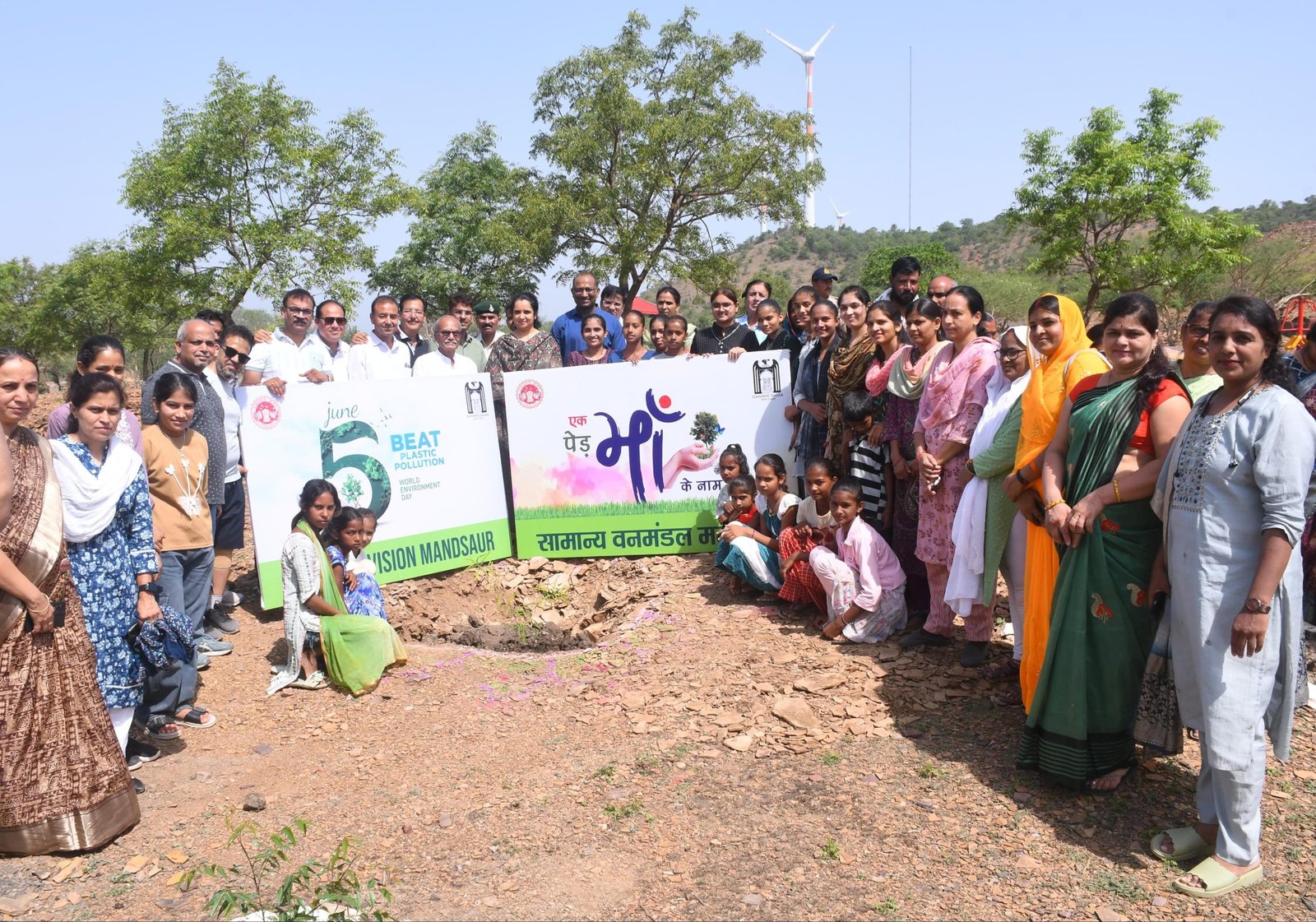 मंदसौर 5 जून 25/ विश्व पर्यावरण दिवस के अवसर पर नगरवन देवडुंगरी, वन कक्ष क्रमांक P06 वन परिक्षेत्र मंदसौर में वृक्षारोपण कार्यक्रम का आयोजन किया गया। इसी के साथ एक पेड़ का के नाम अभियान का भी शुभारंभ हुआ। वृक्षारोपण कार्यक्रम में कलेक्टर श्रीमती अदिती गर्ग, वन मण्डलाधिकारी श्री संजय रायखेरे, सीईओ जिला पंचायत श्री अनुकूल जैन, रोटरी क्लब के सदस्य, समीपस्थ गांवों की आंगनवाड़ी कार्यकर्ता, बच्चे एवं अधिकारी/कर्मचारी की उपस्थिति में प्रतीकात्मक वृक्षारोपण किया गया तथा वनमण्डलाधिकारी मंदसौर द्वारा बच्चों एवं उपस्थितों को पर्यावरण दिवस 2025 की थीम ‘Beat Plastic Pollution’ से अवगत करवाते हुए वन एवं वन्यप्राणी संरक्षण की जानकारी दी। पर्यावरण दिवस कार्यक्रम के अवसर पर विभिन्न प्रजातियों के (विशेषकर फलदार) कुल 351 पौधे रोपित किये गए।