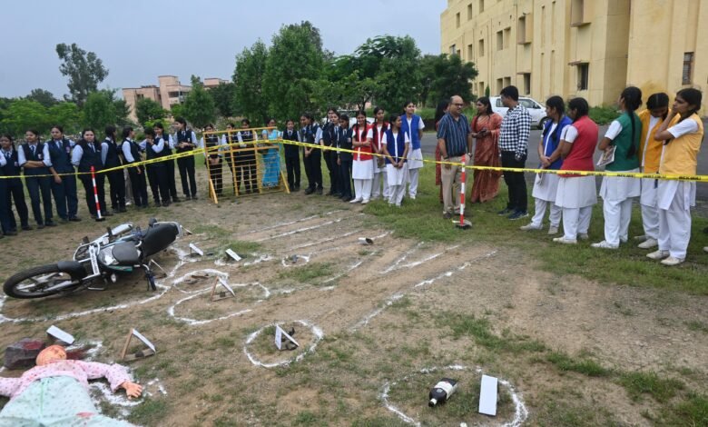 छात्रों ने मॉक क्राइम सीन इन्वेस्टिगेशन में भाग लिया तथा फॉरेंसिक जांच की बारीकियों को समझा