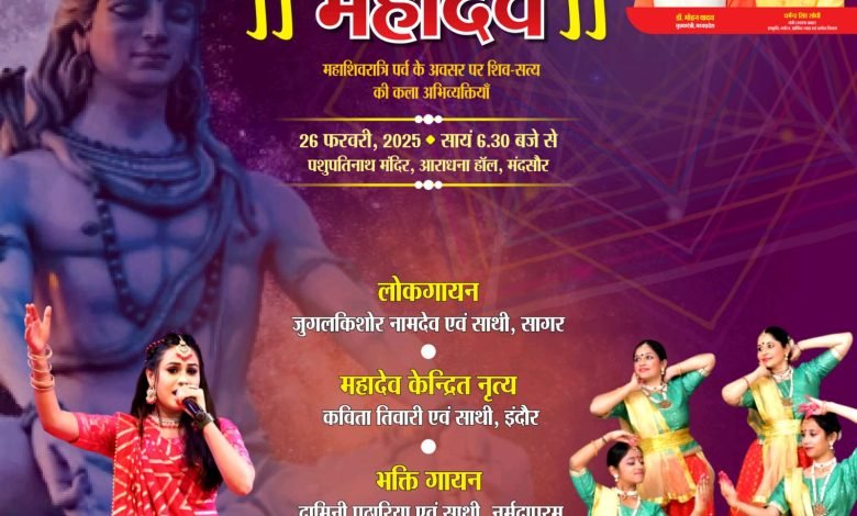 मंदसौर 23 फरवरी 25/ महाशिवरात्रि के पर्व के अवसर पर भगवान पशुपतिनाथ मंदिर आराधना हॉल में शाम 6:30 बजे होंगे जनप्रतिनिधियों की उपस्थिति में शिव-सत्य की कला अभिव्यक्तियाँ, सांस्कृतिक प्रस्तुतियों के रसास्वादन का आयोजन होगा।