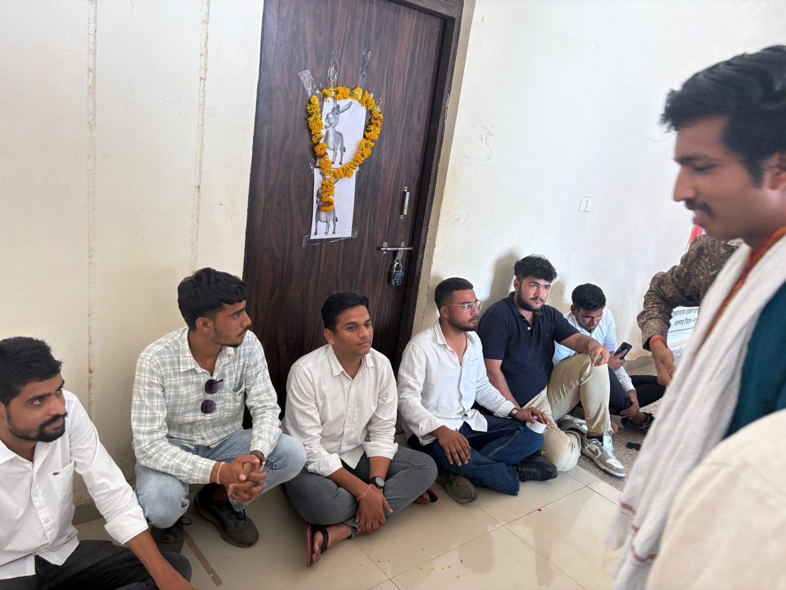 सोमवार को भी नहीं मिले प्राचार्य -सोमवार को जब छात्र और NSUI नेता मंथन धनोतिया पुनः कॉलेज पहुँचे तो प्राचार्य कॉलेज में अनुपस्थित पाए गए। इस पर कार्यकर्ताओं ने एक घंटे तक नारेबाजी की और प्राचार्य के कार्यालय में ताला लगाकर गधे की तस्वीर चिपकाई। कार्यकर्ताओं ने आरोप लगाया कि यह छात्रों के भविष्य से खिलवाड़ है और प्रशासन की गैरजिम्मेदारी को बर्दाश्त नहीं किया जाएगा।