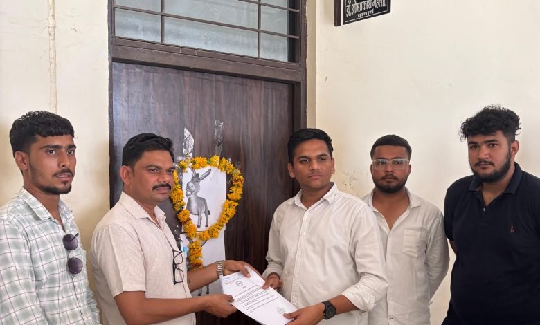 शामगढ़ कॉलेज में लापरवाही पर भड़की NSUI , प्राचार्य के कमरे पर लगाया गधे का पोस्टर, तीन घंटे चला हंगामा