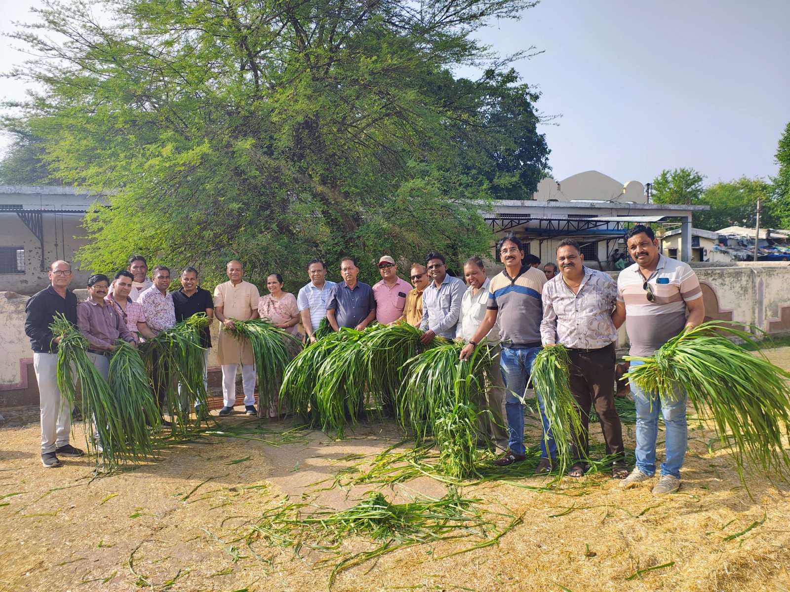गौशाला में गायों को हरा चारा और गुड़ का आहार कराया गया