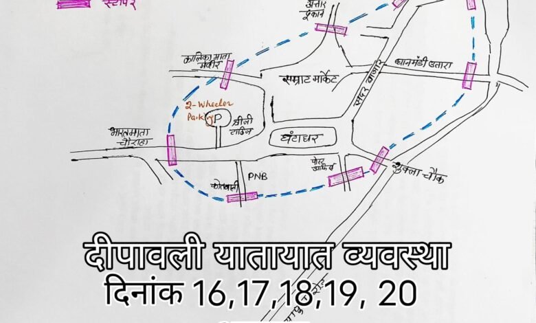 पांच दिवसीय दीपावली त्यौहार पर 16 अक्टूबर से मंदसौर शहर में यातायात व्यवस्था प्रभावी