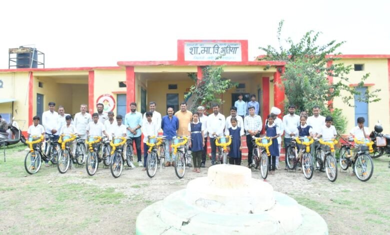 शा मा वि भूतिया में नि: शुल्क सायकिल वितरण – जिला पंचायत सदस्य श्री पालीवाल ने बाउंड्री वाल एवं पुलिया निमार्ण हेतु पांच लाख की घोषणा की