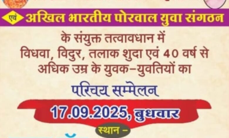 नीमच में एक दिवसीय तलाकशुदा विधवा पोरवाल युवक युवती परिचय सम्मेलन