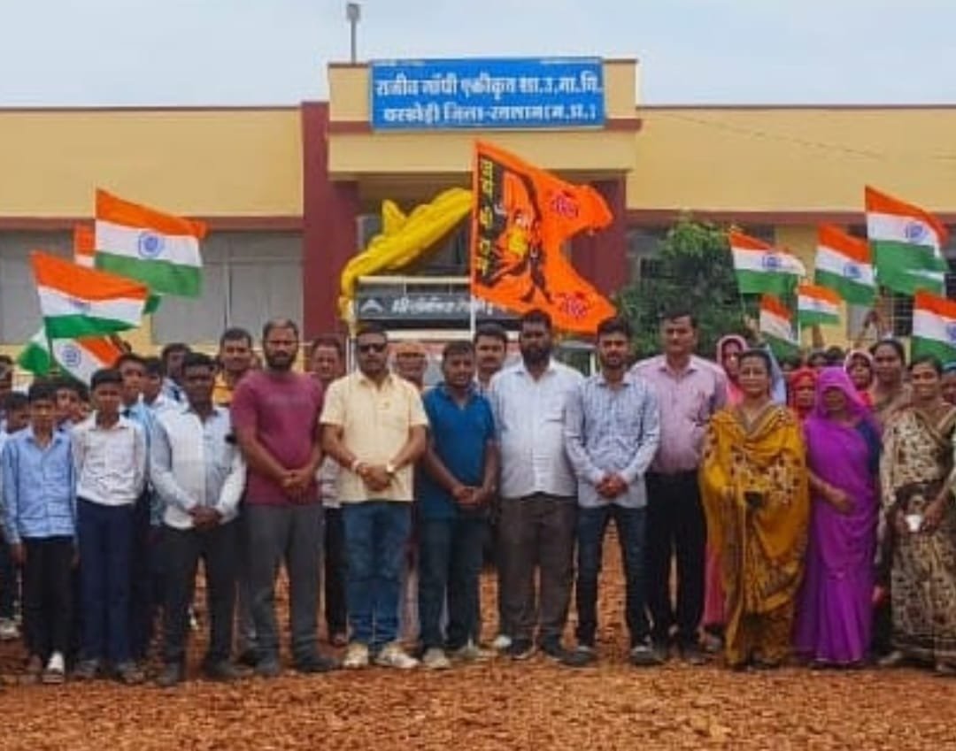 ढोढर। रतलाम जिले के ग्राम पंचायत बरखेड़ी में हर वर्ष की तरह किस वर्ष भी। राजीव गांधी एकीकृत शासकीय माध्यमिक विद्यालय स्कूल से तिरंगा यात्रा प्रारंभ हुई जो कि गांव के प्रमुख मार्गो से होते हुए विद्यालय पहुंचे स्कूल के बच्चे एवं शिक्षक गण तिरंगा यात्रा में सम्मिलित हुए जिसमें स्कूल स्टाफ सरपंच प्रतिनिधि बंसीलाल कुमावत करणी सेना प्रदेश प्रवक्ता जितू बना बरखेड़ी ,रविंद्र सिंह चंद्रावत भेरूलाल दमानी ,कमलेश प्रजापत वीर बहादुर सिंह ,एवं ग्रामीण जन प्राचार्य एवं सभी शिक्षक गण छात्र एवं छात्राएं उपस्थित रहे। गांव में तिरंगा यात्रा में ग्रामीण जन ने फूलों से स्वागत किया माननीय प्रधानमंत्री नरेंद्र मोदी के तिरंगा अभियान के तहत शहर-शहर गांव गांव एवं गली-गली में तिरंगा यात्रा निकाली जा रही है इसी के चलते आज गांव बरखेड़ी के नागरिक स्कूल के बच्चों के द्वारा तिरंगा रैली निकाली गई विद्यालय परिसर में भारत माता की जय किनारे गूंज उठे।