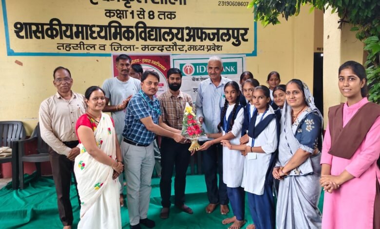 एकीकृत शासकीय माध्यमिक विद्यालय अफजलपुर में बैंक ने 120 छात्रों हेतु फर्नीचर उपलब्ध करवाया