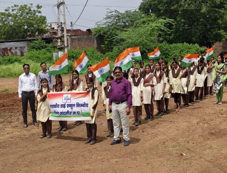 मंदसौर 12 अगस्त 25/ हर घर तिरंगा-हर, घर स्वच्छता अभियान अंतर्गत जिले के स्कूलों में तिरंगा रैली, निबंध प्रतियोगिता, रंगोली प्रतियोगिता एवं व्याख्यान पर कार्यक्रम आयोजित हुए। इस दौरान जिले के स्कूल के विद्यार्थियों को राष्ट्रीय ध्वज के बारे में जानकारी दी गई। स्कूलों में एनसीसी और एनएसएस यूनिट के माध्यम से ‘हर घर तिरंगा’ कार्यक्रम का प्रचार-प्रसार किया जा रहा है। तिरंगा पर केन्द्रित बच्चों की रंगोली प्रतियोगिता आयोजित की जा रही है। राष्ट्रीय ध्वज एवं इसके इतिहास पर स्कूलों में व्याख्यान के विशेष कार्यक्रम आयेाजित किये गये। विद्यार्थियों द्वारा तिरंगे के साथ सेल्फी लेकर उसे www.harghartiranga.com वेबसाइट पर अपलोड भी किया जा रहा है। हर घर में स्वच्छता अपनाना, गांव को कचरा मुक्त बनाना, स्वस्थ और सुंदर वातावरण बनाना, देशभक्ति और एकता का संदेश फैलाना, स्वच्छ गांव – स्वस्थ भारत – हमारा का संकल्प भी दिलाया गया।