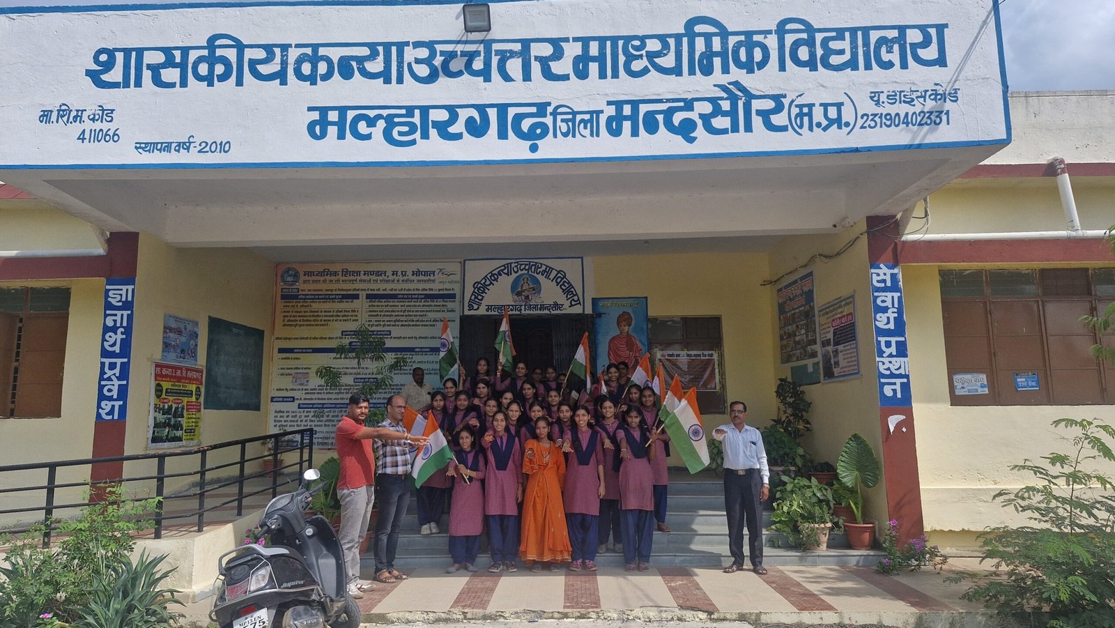 मंदसौर 12 अगस्त 25/ हर घर तिरंगा, हर घर स्वच्छता अभियान अंतर्गत मल्हारगढ़ शासकीय संदीपनी विद्यालय एवं शासकीय कन्या उ. मा. विद्यालय में बच्चों को हर घर तिरंगा, हर घर स्वच्छता अंतर्गत जागरूकता एवं राष्ट्रीय गान एवं स्वच्छता शपथ दिलाई गई। विद्यालय परिसर की स्वच्छता का संकल्प दिलाया। कार्यक्रम में विद्यार्थी, शिक्षक एवं कार्यालय कर्मचारी उपस्थित रहे।==============