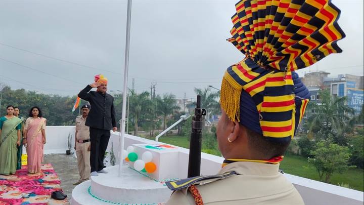 कलेक्टर कार्यालय भवन पर कलेक्टर श्री राजेश बाथम ने ध्वजारोहण किया इस अवसर पर अपर कलेक्टर डॉ. शालिनी श्रीवास्तव, कमिश्नर नगर निगम, अनिल भाना, एस डी एम सुश्री आर्ची हरित, डिप्टी कलेक्टर श्रीमती राधा महंत,सहित कलेक्टर कार्यालय के अधिकारी कर्मचारी उपस्थित थे। स्वतंत्रता दिवस के अवसर पर जिला सहकारी केंद्रीय बैंक में अध्यक्ष कलेक्टर श्री राजेश बाथम द्वारा ध्वजारोहण किया गया। बैंक महाप्रबंधक श्री भाटी सहित बैंक के कर्मचारी उपस्थित थे। जिले में स्कूलों एवं अन्य शासकीय कार्यालय पर भी जनप्रतिनिधियों एवं कार्यालय प्रमुखों द्वारा ध्वजारोहण किया गया।