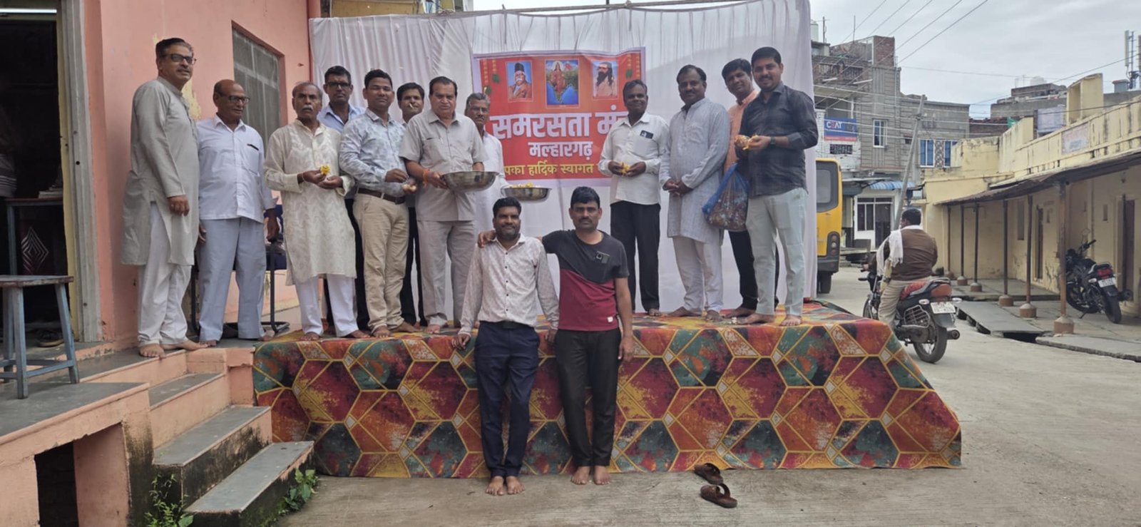 कार्यक्रम में सामाजिक समरसता के विभाग सह संयोजक श्री दिलीप चावड़ा एवं मल्हारगढ़ खंड संघचालक श्री ओमप्रकाश बटवाल घिसा पूरी मांगीलाल भाना रामनारायण पाटीदार समरथ बैरागी प्रकाश बैरागी विभाग प्रचार प्रमुख नटवर अटवाल समाजसेवी राहुल गुर्जर हरीश गुर्जर वह मदनलाल माली रामप्रसाद जाट दिलीप जाट सरस्वती शिशु मंदिर के प्राचार्य तेजकरण वर्मा नरेंद्र पांडे आदि अनेक गण मान्य समाज प्रमुखो ने मिलकर समरसता मंच के माध्यम से बाबा रामदेव की सवारी एवं पुजारीयो का स्वागत सम्मान किया।