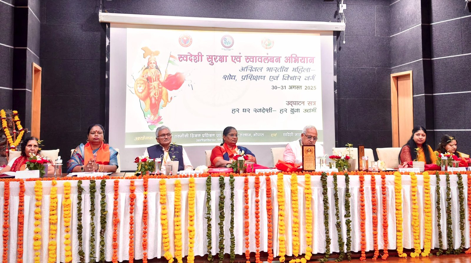 मंत्री सुश्री निर्मला भूरिया ने किया कार्यक्रम का उद्घाटननीमच 30 अगस्त 2025, आज भोपाल स्थित राष्ट्रीय तकनीकी शिक्षक प्रशिक्षण एवं अनुसंधान संसाधन भोपाल में निर्मला भूरिया, मंत्री महिला एवं बाल विकास विभाग मध्यप्रदेश शासन ने स्वदेशी जागरण मंच द्वारा आयोजित कार्यक्रम का उद्धघाटन किया कार्यक्रम में स्वदेशी सुरक्षा एवं स्वावलंबन अभियान अंतर्गत अखिल भारतीय महिला-शोध, प्रशिक्षण एवं विचार वर्ग के उद्घाटन सत्र को प्रारम्भ किया। “हर घर स्वदेशी- “हर युवा उद्यमी” अवधारणा को सभी को अपनाना होगा।