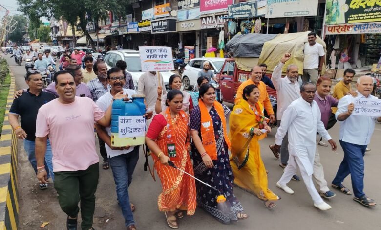 मातृशक्ति का अपमान करने वाले जीतू पटवारी के जाने के पश्चात गंगाजल से शहर का किया गया शुद्धिकरण