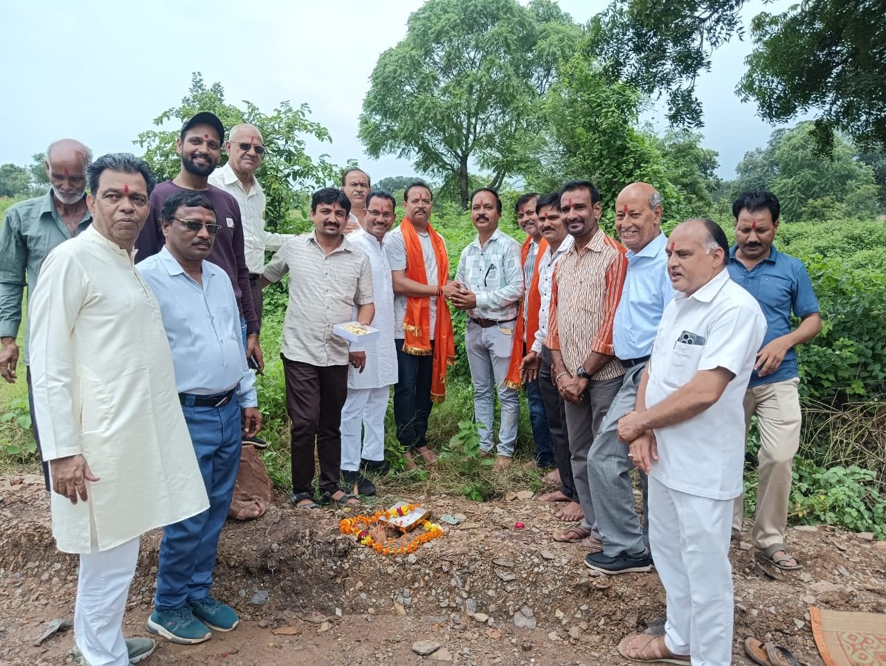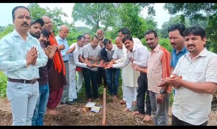 सीतामऊ। कयामपुर सड़क मार्ग कि ओर लगभग 4 लाख कि लागत से बनने जा रहे महाकाल मुक्तिधाम के मुख्य द्वार का निर्माण स्वर्गीय प्रभुलाल जी माली कि स्मृति में दानदाता भामाशाह भाई श्री राधेश्याम माली पुत्र श्री राकेश माली, श्री मनोज माली के द्वारा बुधवार को पंडित नंदकिशोर द्विवेदी (बांके बिहारी) द्वारा वैदिक मंत्रोच्चार के साथ भूमि पूजन वरिष्ठ समाजसेवी श्री सत्यनारायण सोनी काका श्री अशोक जैन विवेकानंद डॉ अरविन्द जैन,श्री चंद्रबिहारी चौहान अध्यक्ष श्री मुकेश चौरड़िया लक्ष्मीनारायण मांदलिया हेमंत जैन, प्रभुलाल राठौर,अशुंल कोठारी, सागर राठौर प्रदीप चौरडिया, कन्हैयालाल सेन नपं सभापति विवेक सोनगरा गोपाल सोनी नयन जैन श्याम डपकरा मोहनलाल राठौर, अंकुश अरोड़ा एवं व्यवस्थापक मुन्नालाल टेलर, किरणमल चैनाल शिल्पकार कि उपस्थिति में कराकर निर्माण कार्य का शुभारंभ किया गया।