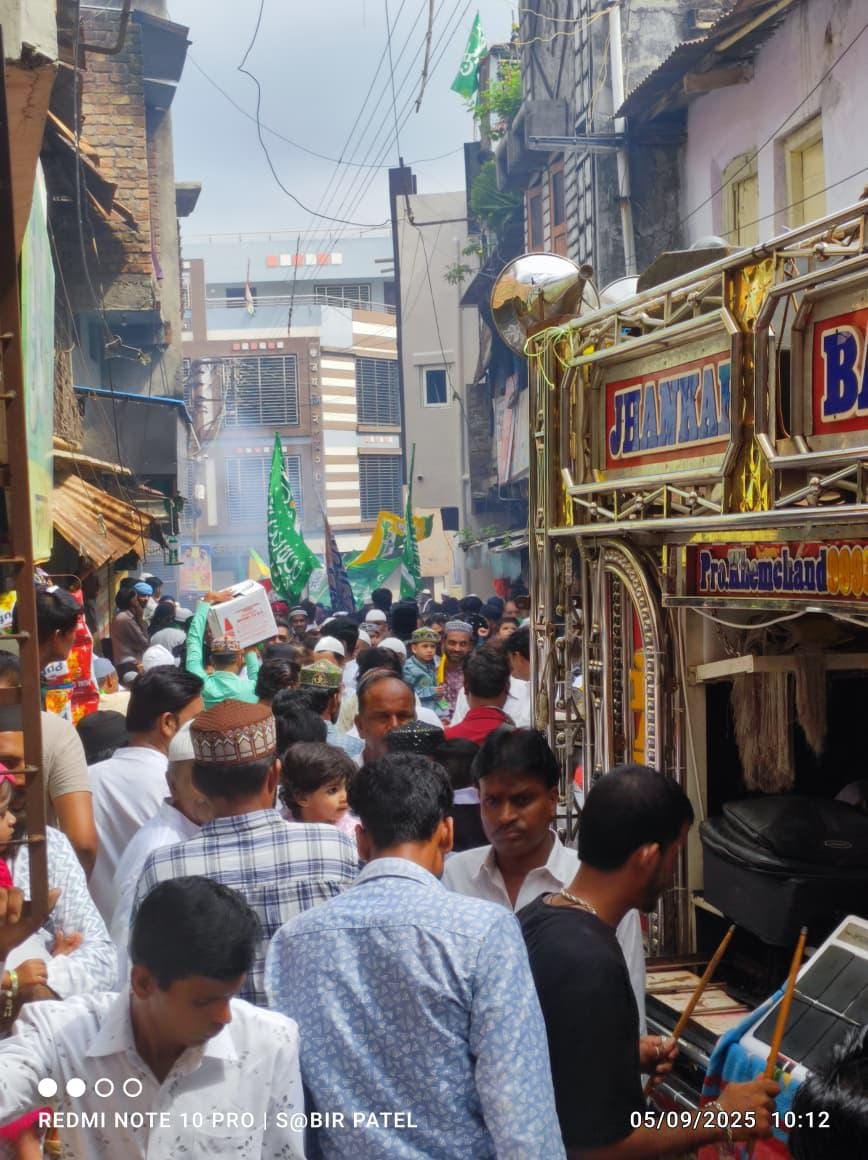 तालाब चौक पर जुलूस सभा में परिवर्तित हुआ, जहां बरेली से पधारे मुफ्ती तैयब रज़ा कादरी ने तकरीर पेश की। उन्होंने अमन, भाईचारे और मोहब्बत का पैग़ाम देते हुए देश में सुकून और सलामती की दुआ की। नात-ए-पाक और दरूद-ओ-सलाम की गूंज के बाद तबर्रुक तक्सीम किया गया।