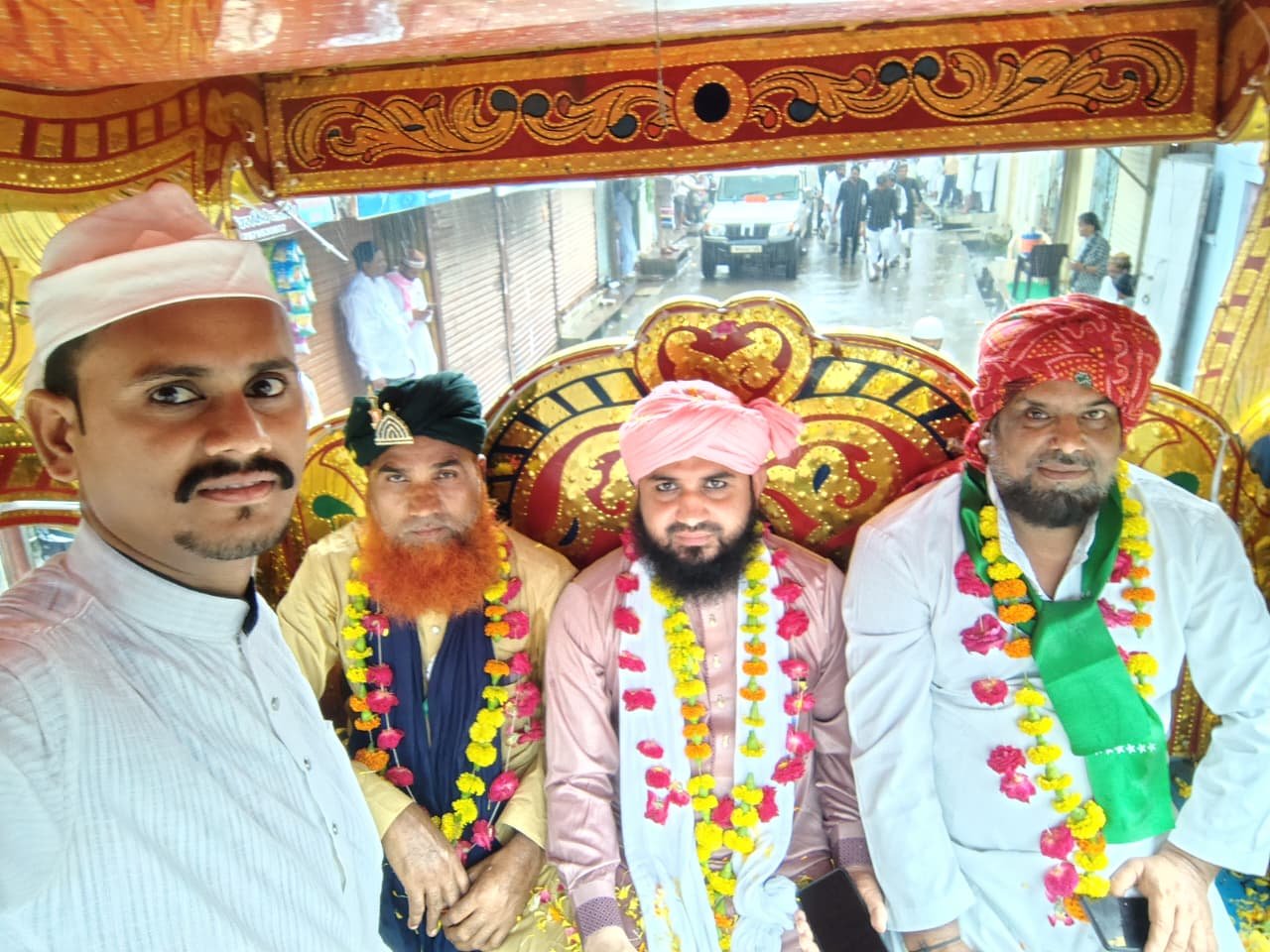 जुलूस में युवा नाते पाक पढ़ने हुए चल रहे थे जिसके पीछे सुसज्जित बग्गी में सवार मुफ्ती तैयब रजा कादरी, काजी इफ्तिखारूल्लाह शेख, अंजुमन सदर शमशेर मौलाना नगर वासीयो का अभिवादन स्वीकार करते हुए चल रहे थे।