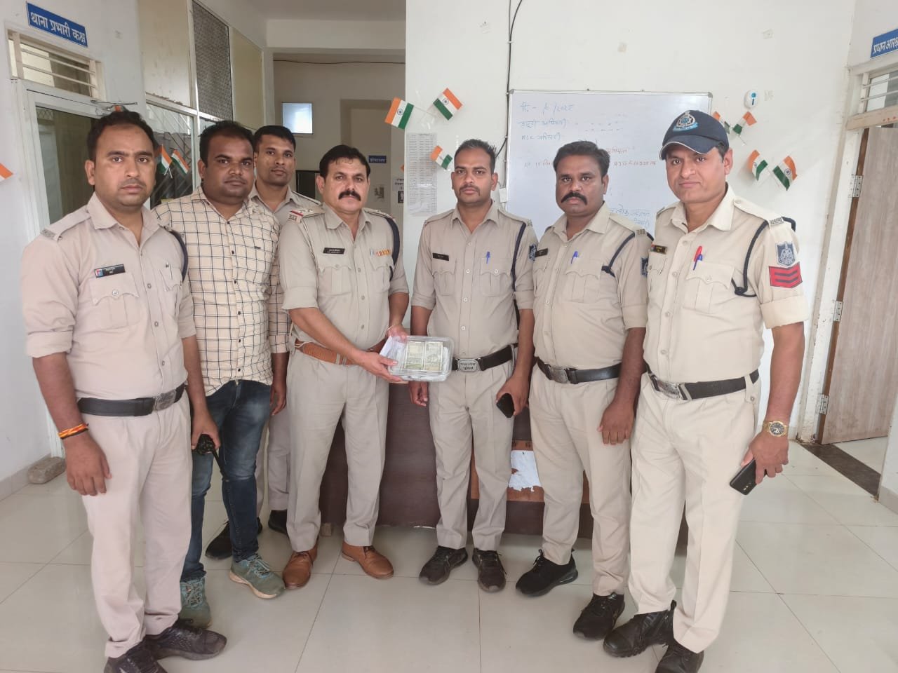 कृषि उपजमंडी परिसर बघाना से चोरी गये नगदी 02 लाख रूपये को 24 घंटे के अंदर जप्त करने में बघाना पुलिस को मिली सफलतापुलिस अधीक्षक श्री अंकित जायसवाल के द्वारा संपत्ति संबंधी गभीर अपराधों में तत्काल कार्यवाही करने हेतु निर्देशित किया गया था, जो अतिरिक्त पुलिस अधीक्षक श्री नवलसिह सिसोदिया एवं नगर पुलिस अधीक्षक महोदय सुश्री किरण चौहान के मार्गदर्शन एवं थाना प्रभारी बघाना श्री नीलेश अवस्थी को नेतृत्व में थाना बधाना पुलिस द्वारा मुखबीर सूचना प तकनीकी विश्लेषण के आधार पर कृषि उपजमंडी परिसर बघाना से चोरी गये नगदी 02 लाख रूपये को 24 घंटे के अंदर जमा करने में सफलता हासिल की है।
