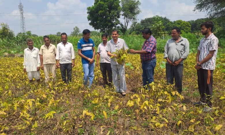 विधायक श्री सिसोदिया ने खारखेड़ा में सोयाबीन की फसल खेतों पर जाकर सर्वे करवाया