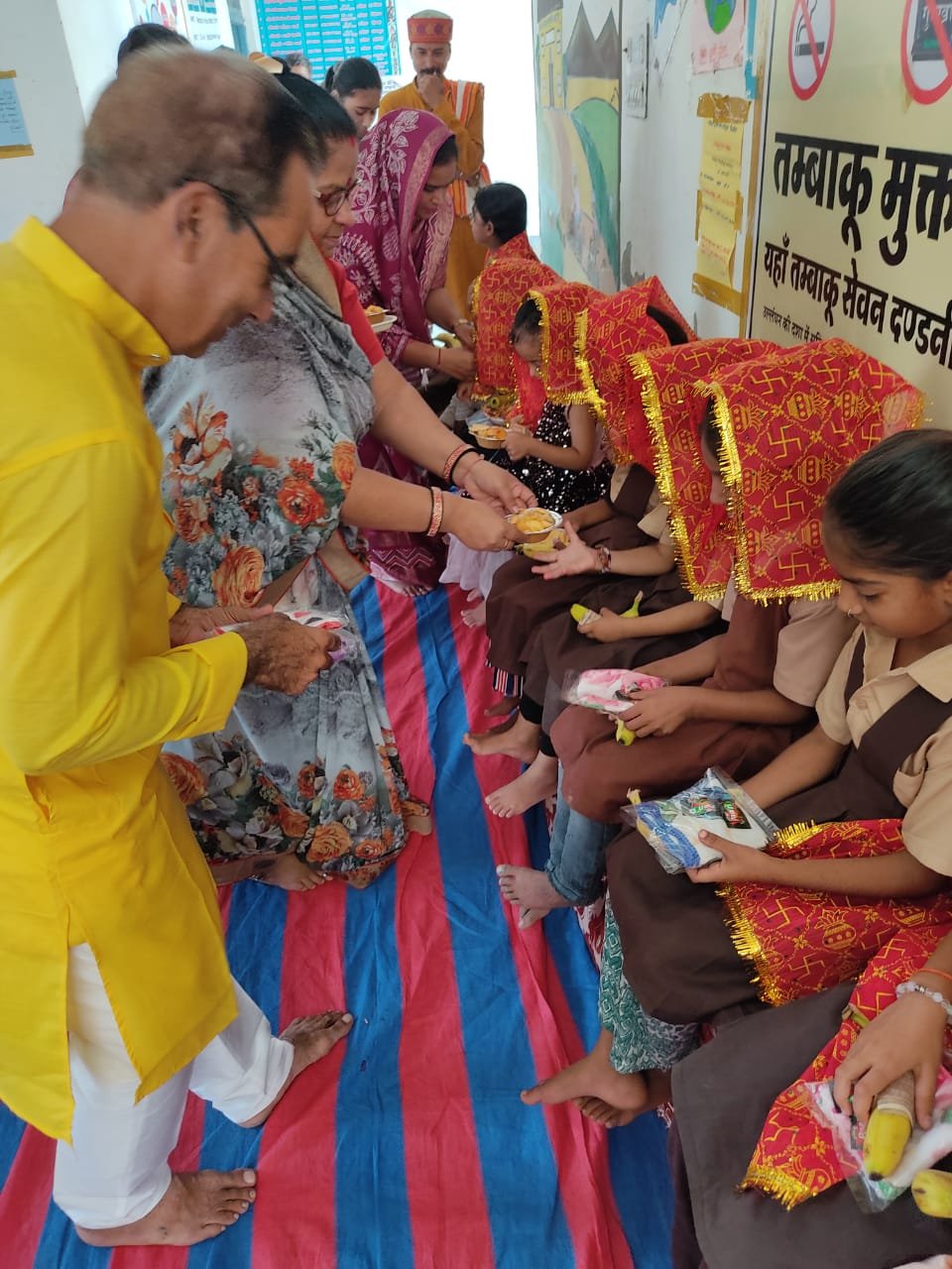 इस बात की प्रेरणा देते हुए जगदीश खींची परिवार द्वारा बेटियों का पावं पूजन,चुनरी ओढाकर सम्मान किया गया तथा उन्हें फलाहार करवाया गया । बेटी देवियों का रूप होती है तथा बेटी का पूजन से, उनका सम्मान करने से संपन्नता बढ़ती है सुख समृद्धि बढ़ती है समाज में ,परिवार में उन्नति के मार्ग खुलते हैं। इसी बात को ध्यान में रखकर यह आयोजन किया गया विद्यालय में पढ़ने वाले सभी बालकों को भी इस अवसर पर सम्मिलित करते हुए उन्हें भी फलाहार करवाया गया जिसमें ।कार्यक्रम में विद्यालय के प्राचार्य अशोक कुमार रत्नावत, शिक्षिका राखी खींची, प्रियंका ब्रिजवानी, रुचि मेहता, शिक्षक मनोहर लाल देवड़ा, अनुराग गुप्ता, अर्सलान खान, नागेश्वर सूर्यवंशी,आंगनबाड़ी केंद्र के कार्यकर्ता एवं सभी छात्र छात्राएं उपस्थित रहें।