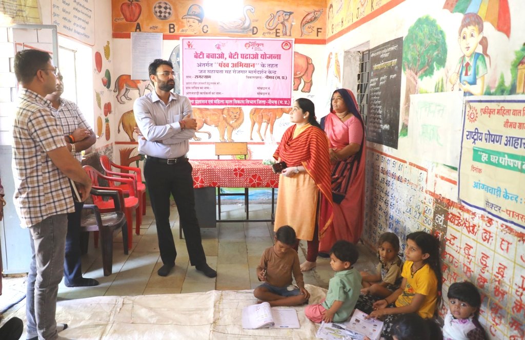नीमच 23 सितम्‍बर 2025, जिला प्रशासन द्वारा कलेक्‍टर श्री हिमांशु चंद्रा के मार्गदर्शन में नीमच जिले में बच्‍चों के सुपोषण और समृद्ध भविष्‍य के लिए सेवा सेवा पखवाडा के तहत एडाप्‍ट अन आंनगवाड़ी, सशक्‍त आंगनवाड़ी अभियान चलाया जा रहा है। इसके तहत जिला प्रशासन द्वारा आंगनवाडी केंद्रों में बच्‍चों के पोषण और सर्वांगीण विकास के लिए जनभागीदारी का आव्‍हान किया गया है। एडाप्‍ट अन आंगनवाडी सक्षम आंगनवाड़ी अभियान के तहत मंगलवार को कलेक्‍टर श्री हिमांशु चंद्रा ने नीमच विकासखण्‍ड के बाछडा बाहुल्‍य सगरग्राम में संचालित आंगनवाड़ी केंद्र का निरीक्षण किया।