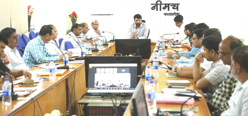 नीमच 23 सितम्‍बर 2025, सेवा पखवाड़ा के तहत पंचायतों के माध्‍यम से ग्रामीणों को स्‍वच्‍छता के लिए जागरूक कर उनमें स्‍वच्‍छता के आदत विकसित करें और गांवों में स्‍वच्‍छता के कार्य करवाएं। किसी भी गांव, आबादी क्षेत्र में गंदगी या कचरा नजर नहीं आए। पर्याप्‍त साफ-सफाई हो। यह निर्देश कलेक्‍टर श्री हिमांशु चंद्रा ने मंगलवार को समय-सीमा पत्रों के निराकरण की साप्‍ताहिक समीक्षा बैठक में सभी जनपद सीईओ, एसडीएम को दिए। बैठक में जिला पंचायत सीईओ श्री अमन वैष्‍णव, एडीएम श्री बी.एस.कलेश, एसडीएम नीमच, जावद एवं मनासा तथा सभी जिला अधिकारी उपस्थित थे।