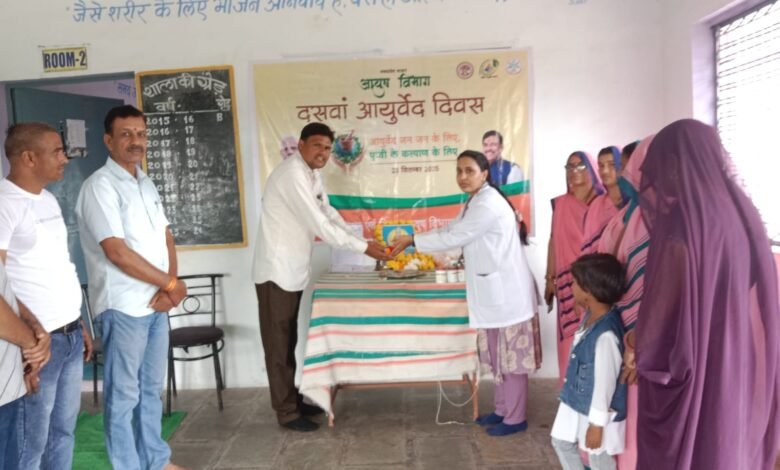 सुवासरा – दशम राष्ट्रीय आयुर्वेद दिवस के उपलक्ष में23 सितंबर मंगलवार को थीम आयुर्वेद जन-जन के लिए पृथ्वी के कल्याण के लिए के तहत आयुष्मान आरोग्य मंदिर गोवर्धनपुरा में निशुल्क आयुर्वेद चिकित्सा एवं स्वास्थ्य परीक्षण शिविर का शुभारंभ सरपंच श्री विनोद मेहर व,जनप्रतिनिधियों , आयुर्वेद चिकित्सा अधिकारी डॉ दीपमाला राठौर एवं स्कूल प्राचार्य, शिक्षकों एवं आंगनवाड़ी कार्यकर्ता, सहायक, आशा कार्यकर्ता के माध्यम से हम सभी के प्रेरणा मार्गी एवं आयुर्वेद के ज्ञाता भगवान धन्वंतरि जी के पर माल्यार्पण एवं दीप धुप,प्रज्ज्वलित कर प्रारंभ किया गया । जिसमें छात्रों को आयुर्वेद के लिए प्रतिज्ञा भी दिलवाई गई जैसे की मैं मैं प्रतिज्ञा करता/करती हूँ कि1. मैं अपने शरीर को स्वस्थ रखूँगा मैं संतुलित भोजन करूँगा और समय पर खाऊँग मैं प्रकृति के नियमों का पालन करूँगा मैं मन को शांत और सकारात्मक रखूँगा।