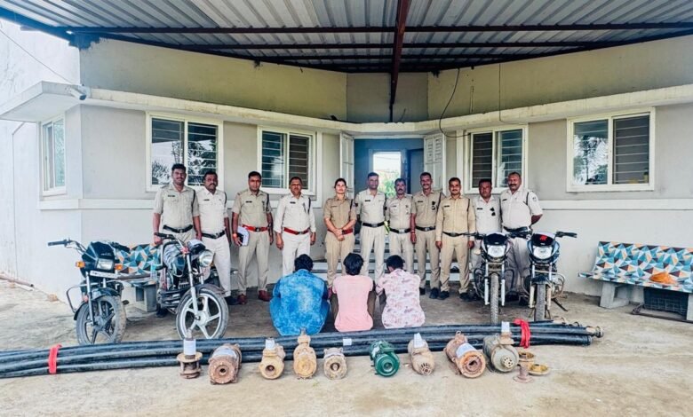तीन आरोपीयों को गिरफ्तार कर चोरी गई 08 विद्युत मोटर पन्डुब्बी 07 पाईप व 03 मोटर सायकल व एक घटना में प्रयुक्त मोटर सायकल बरामद