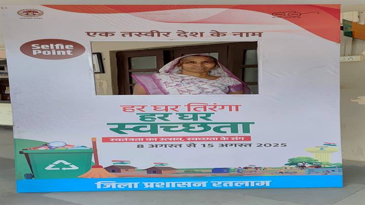 रतलाम 11 अगस्त 2025/ इस वर्ष 79 वें स्वतंत्रता दिवस के अवसर पर 8 अगस्त से 15 अगस्त तक चलाये जा रहे ‘‘हर घर तिरंगा, हर घर स्वच्छता का उत्सव, स्वच्छता के संग’’ अभियान के दौरान शासन के निर्देशानुसार जिले में व्यापक प्रचार-प्रसार के लिए कई गतिविधियां की जा रही है। इस अवसर पर कलेक्टर कार्यालय एवं जिला पंचायत कार्यालय में लगाये गये सेल्फी पॉइंट पर आमजनो द्वारा सेल्फी लेकर सभी को अपने आसपास स्वच्छता रखने एवं तिरंगा अभियान के दौरान अपने घर तिरंगा लगाने के लिए प्रेरित किया जा रहा है।