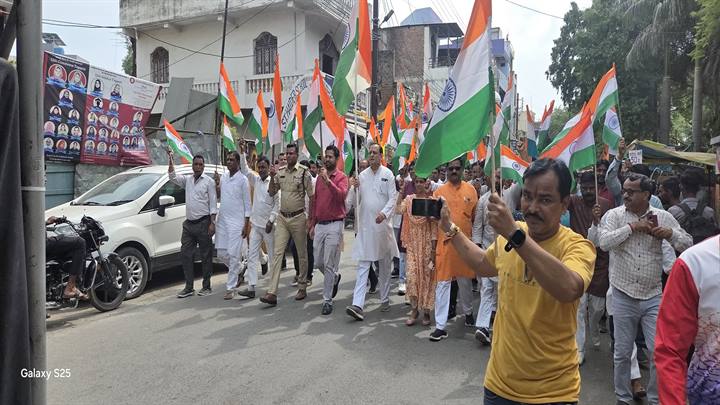 रतलाम 11 अगस्त 2025/ इस वर्ष 79 वें स्वतंत्रता दिवस के अवसर पर 8 अगस्त से 15 अगस्त तक चलाये जा रहे ‘‘हर घर तिरंगा, हर घर स्वच्छता का उत्सव, स्वच्छता के संग‘‘ अभियान के तहत आज जावरा में हर घर तिरंगा अभियान के अंतर्गत विधायक डॉ राजेन्द्र पाण्डे के नेतृत्व में  तिरंगा रैली  निकाली गई। तिरंगा रैली सीएम राइज स्कूल से प्रारंभ होकर जावरा के विभिन्न मार्गों से गुजरी। तिरंगा रैली में जावरा एस डी एम श्री त्रिलोचन गोड़ एवं सीबीएमओ डॉ.शंकर लाल खराडी एवं जावरा के नागरिकों द्वारा भाग लिया गया।