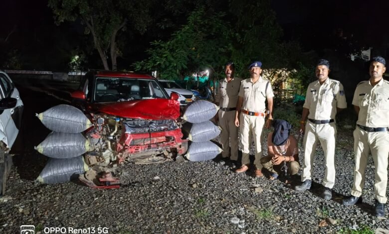 29.09.2025 को उनि अविनाश कुमार सोनी को मुखबीर सूचना प्राप्त हुई की एक बिना नम्बर लाल रंग की मारुति ब्रेजा कार से एक व्यक्ति काले रंग के प्लास्टिक के कट्टो मे अवैध मादक पदार्थ डोडाचूरा भरकर मेलखेडा तरफ से शामगढ होते हुए खाईखेडा तरफ जाने वाला है सूचना विश्वसनिय होने से उनि अविनाश कुमार सोनी हमराही फोर्स के आशीर्वाद रिसोर्ट के पास कान्हा मांगलिक रोड पर नाकाबंदी करते लाल रंग की ब्रेजा कार चालक द्वारा रोड किनारे खड़ी मोटरसायकलो व कार को टक्कर मारते हुए भागने लगा जिसे पुलिस फोर्स की मदद से धेराबंदी कर बामुश्किल पकडा। जो मौके पर कार्यवाही करते हुऐ एक बिना नम्बर की लाल रंग की मारुति ब्रेजा कार से आरोपी प्रहलाद सिंह पिता पूरसिंह सौधिया राजपुत उम्र 24 साल निवासी ग्राम भामखेडी थाना गरोठ जिला मंदसौर (म.प्र.) के कब्जे से कुल 06 प्लास्टिक के कट्टो मे भरा 131 किलोग्राम डोडाचुरा किमती 2,62,000 रुपये का जप्त किया व आरोपी को गिरफ्तार किया गया । थाना वापसी पर आरोपी के विरुद्ध थाना शामगढ पर अपराध क्रमांक 372/25 धारा 8/15 NDPS ACT का पंजीबद्ध कर विवेचना मे लिया गया है । आरोपी प्रहलाद सिंह से अवेध मादक पदार्थ डोडाचूरा तस्करी के स्त्रोत के संबंध में पीआर प्राप्त कर पूछताछ की जावेगी ।