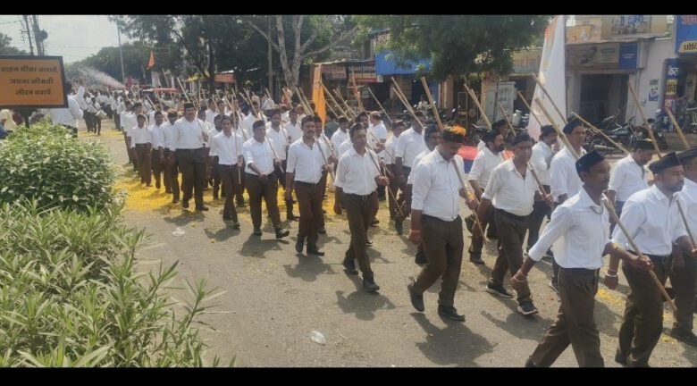 नीमच। नगर में राष्ट्रीय स्वयंसेवक संघ के 100 वें स्थापना दिवस 02 अक्टूबर रविवार को पथ संचलन हायर सेकेंडरी स्कूल क्रमांक-2 से प्रारंभ हुआ। संचलन कमल चौक, फव्वारा चौक, बस स्टैंड, मूलचंद मार्ग, अग्रसेन वाटिका, जाजू बिल्डिंग, घंटाघर, नायका गली, भारत माता चौराहा, एलआईसी रोड और अंबेडकर मार्ग से होता हुआ पुनः स्कूल ग्राउंड पर संपन्न हुआ। इस दौरान “वंदे मातरम्”, “भारत माता की जय” और “जय श्रीराम” के नारों से पूरा शहर गूंज उठा।