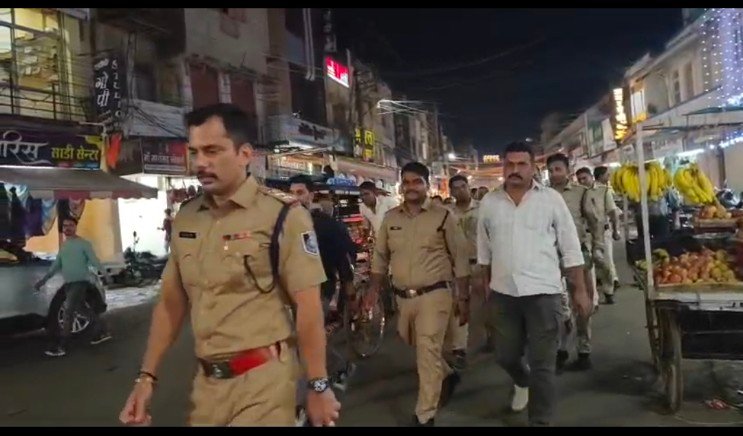 मंदसौर, -दीपावली त्यौहार के मद्देनजर शहर में पुलिस अधीक्षक विनोद कुमार मीणा के निर्देशन में शहर की सुरक्षा व्यवस्था समेत यातायात व्यवस्था को सुदृढ़ बनाए रखने हेतु आज बुधवार को थाना कोतवाली पुलिस ने क्षेत्र के मुख्य व्यावसायिक मार्गों में फ्लैगमार्च कर असामाजिक तत्वों को कड़ा संदेश दिया। बताते चलें कि पुलिस अधीक्षक श्री मीणा के द्वारा सभी थाना प्रभारियों को शहर में तगड़ी सुरक्षा व्यवस्था के साथ पुलिस को लगातार भ्रमण कर यातायात व्यवस्था को दुरस्त रखने का निर्देश दिए गए हैं। इसी क्रम में आज बुधवार को कोतवाली थाना प्रभारी पुष्पेन्द्र सिंह राठौड़ ने शहरी क्षेत्र में पुलिसकर्मियों संग भ्रमण कर शहर की सुरक्षा व्यवस्था जांची।