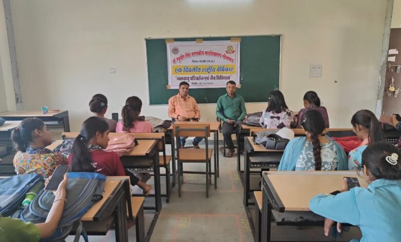 सीतामऊ। डॉ. रघुवीर सिंह शासकीय महाविद्यालय सीतामऊ में बुधवार को “जलवायु परिवर्तन एवं जैव विविधता” विषय पर एक दिवसीय राष्ट्रीय वेबिनार का आयोजन किया गया। आयोजन के मार्गदर्शक डॉ. एच.एल. अनिजवाल (अतिरिक्त संचालक, उच्च शिक्षा) तथा मुख्य संरक्षक डॉ. जे.एस. दुबे (प्राचार्य, पीजी कॉलेज मंदसौर) रहे।