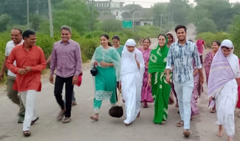 सिंगोली (मुकेश जैन)-नगर के श्री पार्श्वनाथ दिगंबर जैन मंदिर पर चातुर्मास हेतु विराजमान आचार्य श्री विद्यासागर जी महाराज दीक्षा प्रदान आचार्य श्री ज्ञैयसागर जी महाराज कि परम प्रभावित शिष्या गुरु मां आर्यिका श्री प्रशममति माताजी व आर्यिका श्री उपशममति माताजी ससघ का नगर मे चातुर्मास के उपरांत 24 अक्टूबर शुक्रवार को प्रातः काल 5:45 बजे मंगल विहार धनगाव कि तरफ हुआ समाज के पारस जैन ने बताया कि माताजी ससघ का नगर मै साढे तीन माह से अनेक अधिक समय तक धार्मिक आयोजन हुए जिसमे बडी संख्या में समाजजन ने पुण्य अर्जित किया माताजी ससघ का विहार के समय किसी भी समाजजनों को सुचना नही थी माताजी ससघ आगम के अनुसार बिना बताए विहार करती है माताजी के विहार के समय बडी संख्या में समाजजन साथ मे चल कर धनगाव तक पहुंचे माताजी ससघ का मंगल विहार आसपास के गांवों मे धर्म प्रभावना के लिए चल रहा है विहार के दोरान राजु ठग सुमित खटोड़ कैलाशचन्द्र बगड़ा निलेश साकुण्या महावीर धानोत्या ऋषभ ठोला कुशाल बगडा अनिल सामरिया पुष्पेंद्र ठग आदी समाजजन उपस्थित थे