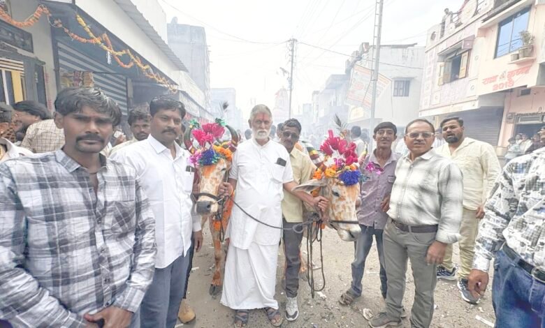 परंपरा के अनुसार बैलों कि जोड़ीयों का निकला चल समारोह, गौ माता ने भी किया भ्रमण