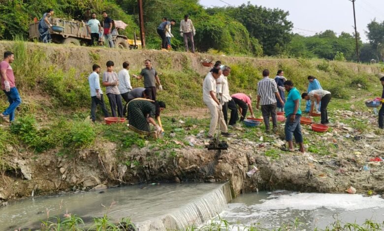 शिवना शुद्धिकरण अभियान के 68 वें दिन 3 ट्राली गाजर घांस व कचरा निकाला गया