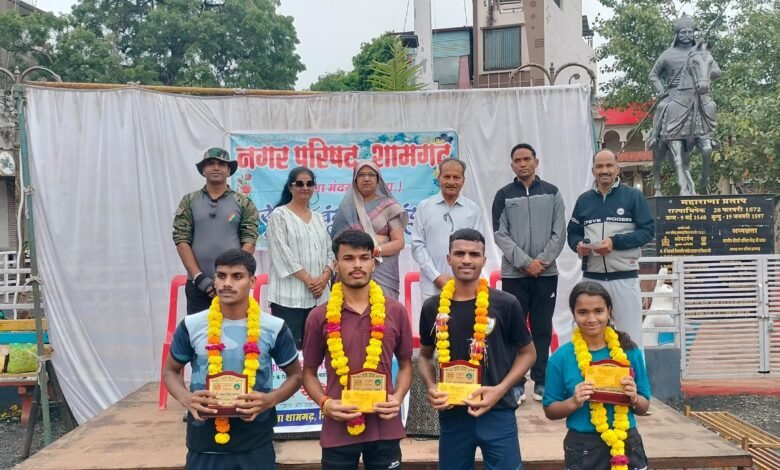 रॉयल अकैडमी शामगढ़ के बच्चों ने अपना श्रेष्ठ प्रदर्शन करते हुए प्रथम द्वितीय एवं तृतीय पुरस्कार प्राप्त किया नपा अध्यक्ष श्रीमती कविता नरेंद्र यादव के द्वारा बस स्टैंड झंडा चौक पर मैराथन दौड़ का पुष्प वर्षा का स्वागत किया गया दौड़ समाप्त होने के बाद झंडा चौक पर विजेताओं का सम्मान समारोह रखा गया