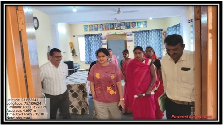 मुख्य कार्यपालन अधिकारी जिला पंचायत रतलाम सुश्री वैशाली जैन द्वारा माँ शक्ति आजीविका सामुदायिक प्रशिक्षण केंद्र जावरा एवं कार्यालय नारी शक्ति संकुल स्तरीय संगठन ढोढर का भ्रमण किया गया | जनपद परिसर जावरा में स्थित मां शक्ति सामुदायिक प्रशिक्षण केंद्र का अवलोकन कर विकास खंड कार्यालय संकुल कार्यालय प्रशिक्षण हॉल, टीवी, प्रोजेक्टर, बैठक व्यवस्था, शौचालय, सेनेटरी वेंडिंग मशीन, रसोईघर, डाइनिंग रूम, भोजन मेनू, पुस्तकालय ,प्रतिभागी आवास कक्ष का निरीक्षण किया गया | संकुल संगठन अध्यक्ष श्रीमती पुष्पा माली द्वारा पुष्प गुच्छ से स्वागत किया गया एवं सी. ई. ओ. सुश्री जैन द्वारा उपस्थित संकुल संगठन के पदाधिकारी एवं अन्य महिलाओं से चर्चा की गई।