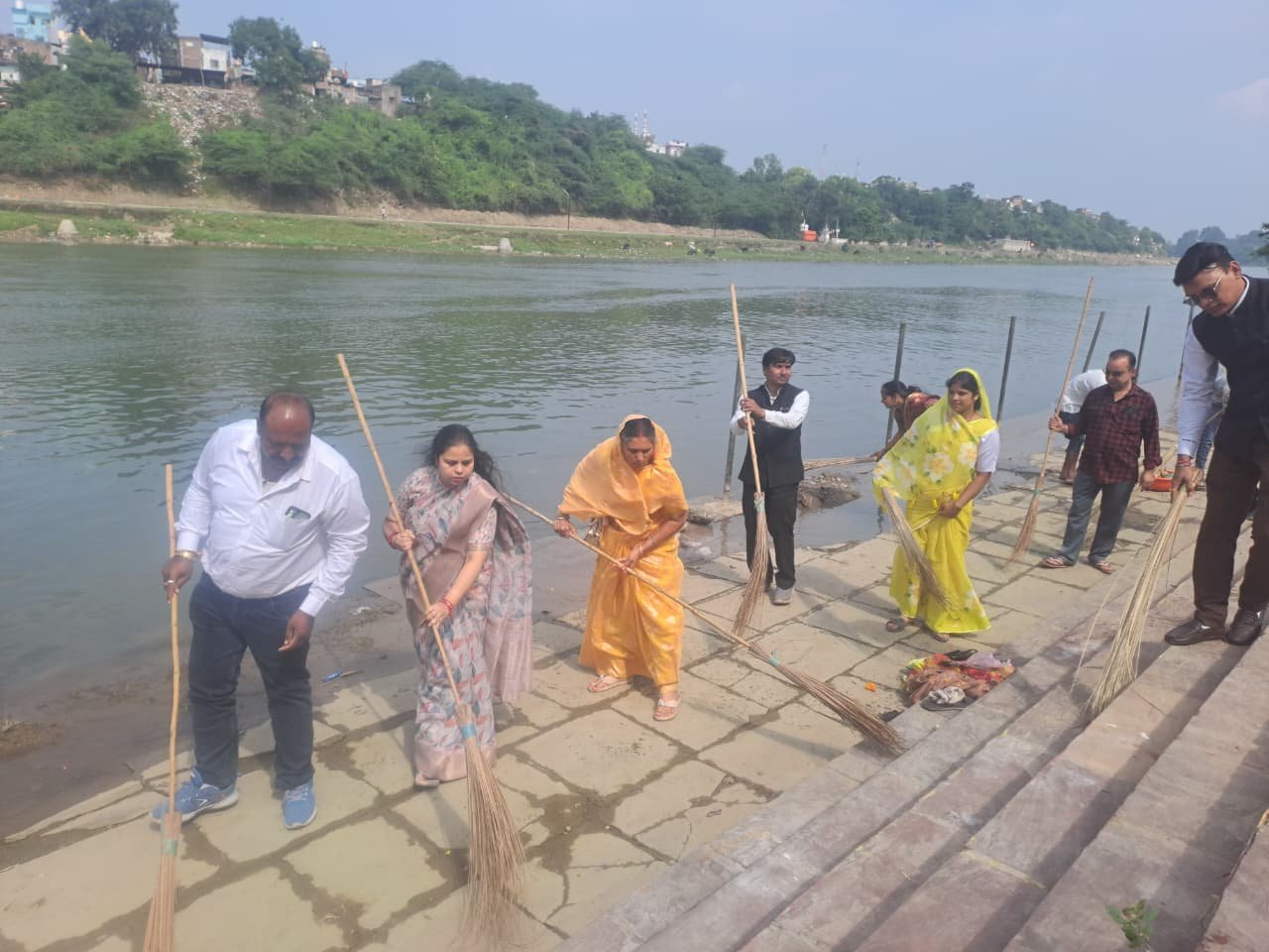 शिवना नदी के घाटों की सफाई की- निरीक्षण के बाद नपाध्यक्ष श्रीमती रमादेवी बंशीलाल गुर्जर,उपाध्यक्ष श्रीमती नम्रता चावला, मेला समिति सभापति श्रीमती प्रतिभा भैरवे ने मेला समिति सदस्यों के साथ शिवना नदी के पशुपतिनाथ मंदिर के घाट की सफाई हेतु श्रमदान किया तथा अपने हाथों से सफाई कर्मचारियों के साथ नदी के घाट की सफाई की तथा यहां जो मिट्टी तथा अन्य जो अपशिष्ट पदार्थ पड़े है तो उन्हें हटाने का कार्य किया।