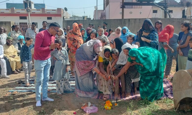 वार्ड नंबर 15 में भूमि पूजन के दौरान बड़ी संख्या में वार्डवासी पुरुष एवं महिलाएं एकत्रित हुए कुछ महिलाओं ने अपनी समस्याओं को नपा अध्यक्ष के सामने रखी नपा अध्यक्ष ने तुरंत समस्याओं का समाधान करने के लिए नपा कर्मचारियों को आदेशित किया