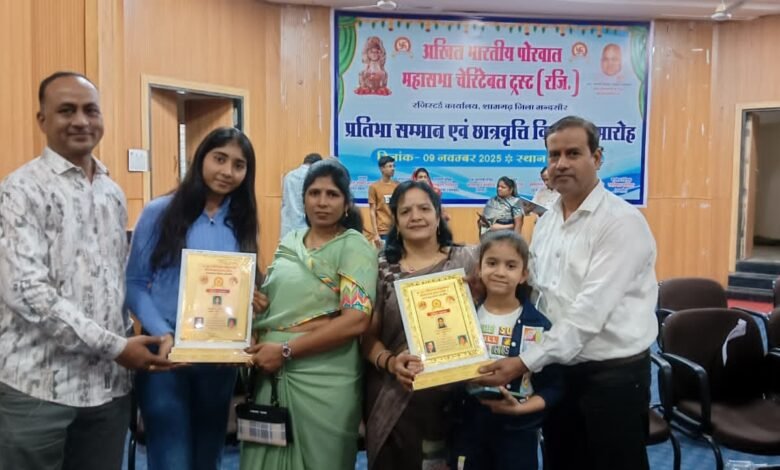 ताल नगर पोरवाल समाज की दो प्रतिभाओं को मंदसौर में सम्मानित किया गया