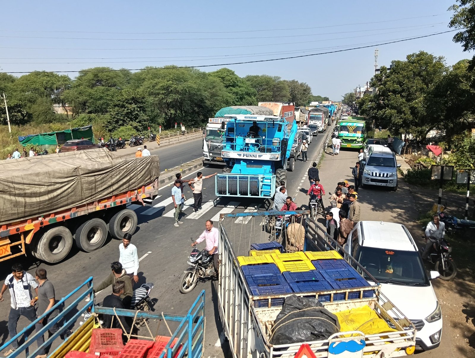 नागरिकों ने स्पीड ब्रेकर का मांग को लेकर हाईवे रोड जाम कर दिया जो करीबन 25 से 30 मिनट तक जाम लग गया और दोनों साइड बड़ी-बड़ी ट्रैकों की लंबी कतारें लग गई।