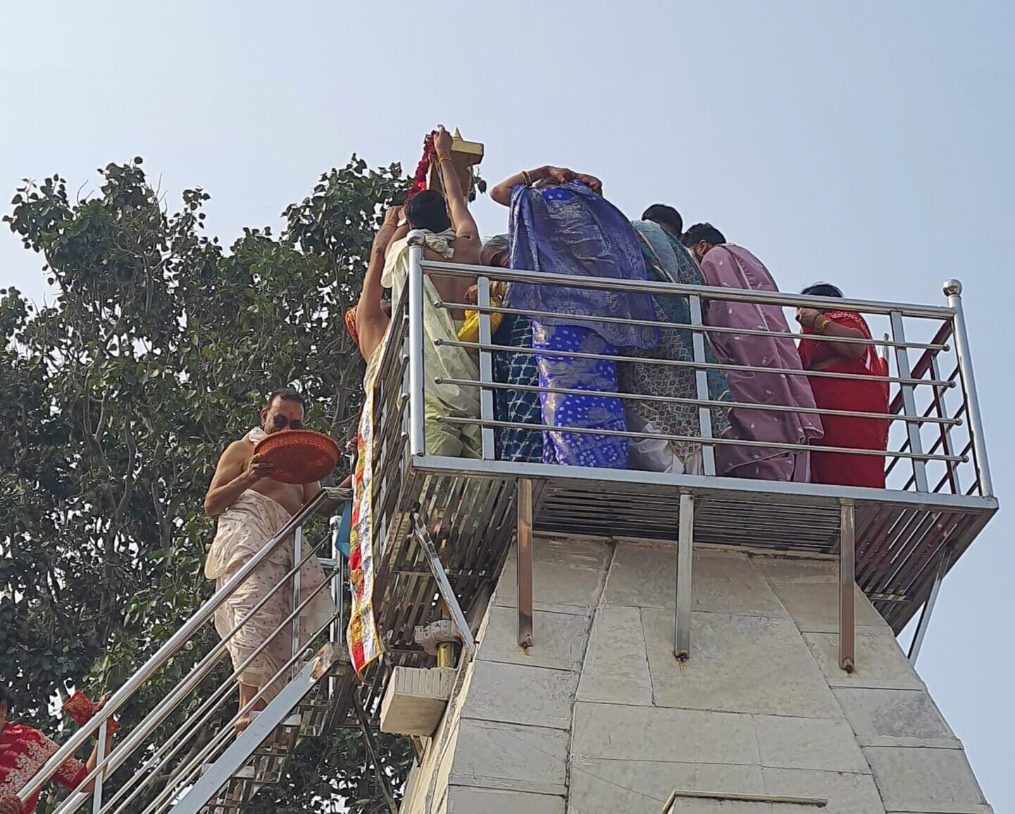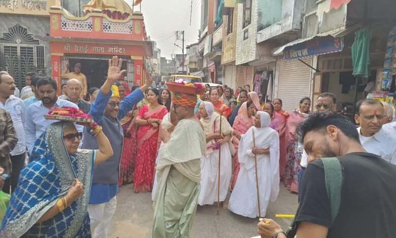 श्री संभवनाथ जैन मंदिर के शिखर पर लहराई धर्मध्वजा