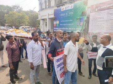 नीमच कलेक्टर कार्यालय परिसर में सहकारिता विभाग की कथित लापरवाही और अक्षय क्रेडिट सोसायटी से पीड़ित लोगों ने विभाग की सांकेतिक अर्थी निकालकर विरोध प्रदर्शन किया। इस दौरान ‘राम नाम सत्य है’ के नारे लगाए गए, जिसके बाद प्रशासन हरकत में आया और पुलिस ने कुछ प्रदर्शनकारियों को हिरासत में ले लिया।