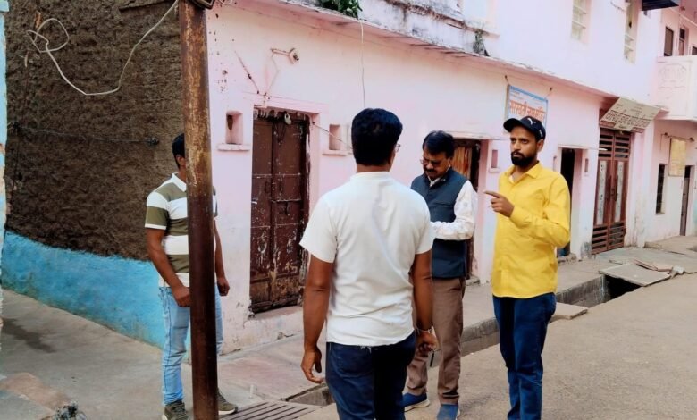 सभापति श्री सोनगरा ने नगर के क्षतिग्रस्त पोल से कनिष्ठयंत्री को कराया अवगत, कनिष्ठयंत्री ने किया निरीक्षण