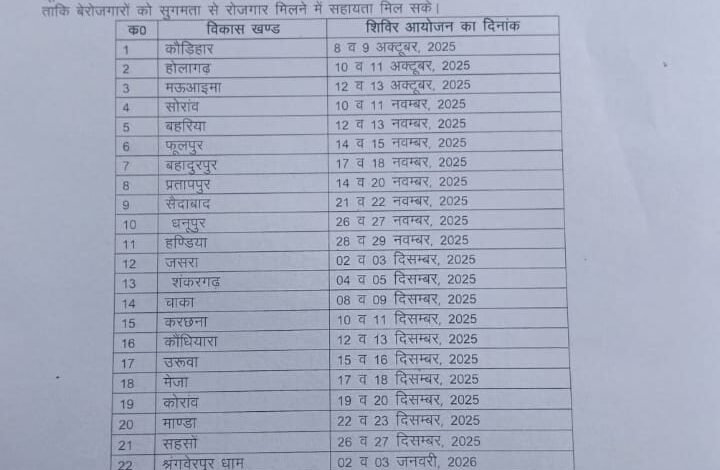प्रयागराज, जिले के बेरोजगार युवाओं के लिए एक महत्वपूर्ण पहल शुरू हो रही है। कार्यालय जिला विकास अधिकारी, प्रयागराज द्वारा जारी पत्र संख्या 1936/विकास-जीसी/सुरक्षा प्रशिक्षण/2025 (दिनांक 5 अक्टूबर 2025) के अनुसार, सभी खंड विकास अधिकारियों को निर्देश दिए गए हैं कि वे अपने-अपने ब्लॉक मुख्यालयों पर विशेष शिविर आयोजित करें। यह शिविर भारतीय सुरक्षा कौशल परिषद (नई दिल्ली) और एसआईएस इंडिया लिमिटेड के संयुक्त तत्वावधान में सुरक्षा कार्यों (सिक्योरिटी गार्ड) के लिए युवाओं का पंजीकरण, प्रशिक्षण और उसके बाद स्थायी रोजगार सुनिश्चित करने के उद्देश्य से लगाया जाएगा।पत्र में उल्लेख है कि यह अनुरोध आर. जायसवाल, कमांडेंट, क्षेत्रीय प्रशिक्षण केंद्र, लखनऊ के पत्र संख्या 311-एसएससीआई एसआईएस (दिनांक 4 अक्टूबर 2025) पर आधारित है। खंड विकास अधिकारियों को निर्देशित किया गया है कि वे अपने विकास खंड की ग्राम पंचायतों में इच्छुक युवाओं को शिविर की जानकारी दें और आयोजन में पूर्ण सहयोग सुनिश्चित करें। साथ ही, भर्ती प्रक्रिया में किसी भी प्रकार की अवैध गतिविधि न होने पर विशेष जोर दिया गया है, ताकि युवाओं को पारदर्शी तरीके से रोजगार प्राप्त हो सके।जिला प्रशासन के इस कदम से ग्रामीण क्षेत्रों के हजारों बेरोजगार युवाओं को लाभ मिलने की उम्मीद है। शिविरों में पंजीकरण के बाद युवाओं को विशेष सुरक्षा प्रशिक्षण दिया जाएगा, जिसके समापन पर एसआईएस इंडिया लिमिटेड द्वारा स्थायी नौकरी का अवसर प्रदान किया जाएगा। इच्छुक युवा अपने नजदीकी ब्लॉक मुख्यालय या ग्राम पंचायत से संपर्क कर शिविर की तिथियों व विवरण प्राप्त कर सकते हैं।