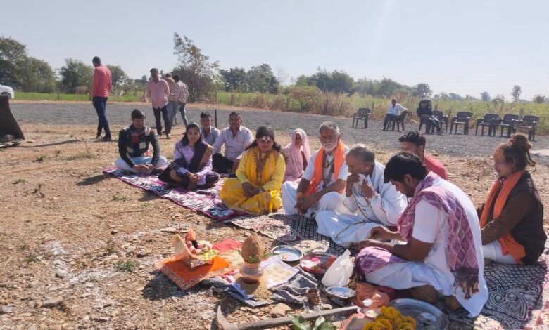 रेवास देवड़ा नौगावां के मध्य भक्तों ने हनुमान जी के भव्य मंदिर का लिया संकल्प, संतों ने किया भूमि पूजन
