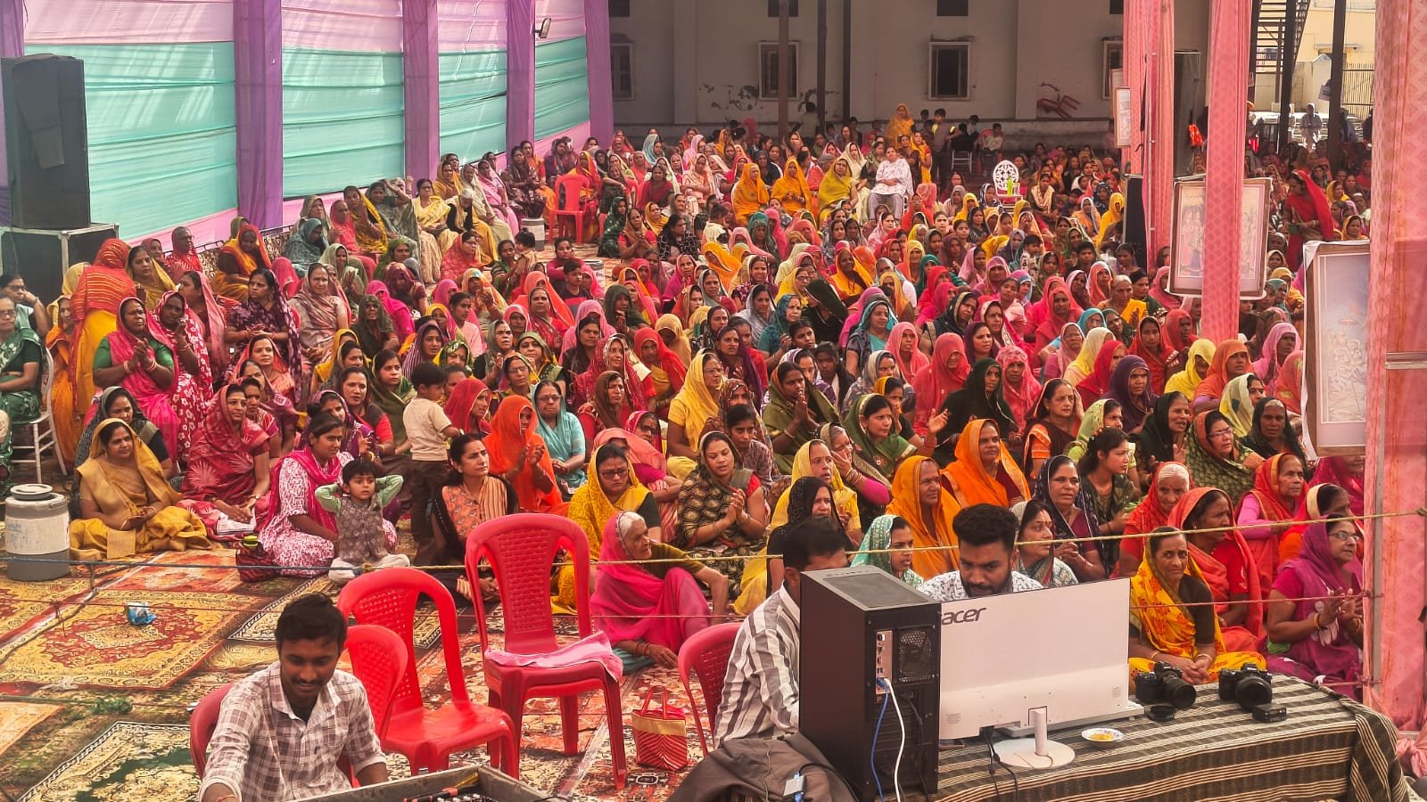 आज की कथा में राजा परीक्षित प्रसंग, भरत चरित्र, शिव–पार्वती विवाह एवं कलियुग के स्वरूप पर विस्तार से वर्णन किया गया। मधुर भजनों पर महिलाएं भावविभोर होकर झूम उठीं और भक्ति रस का आनंद लिया।
